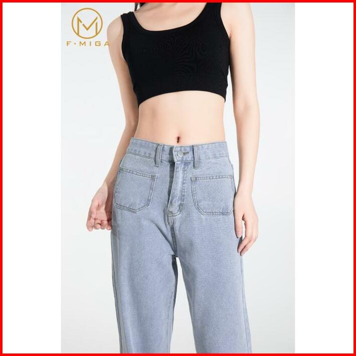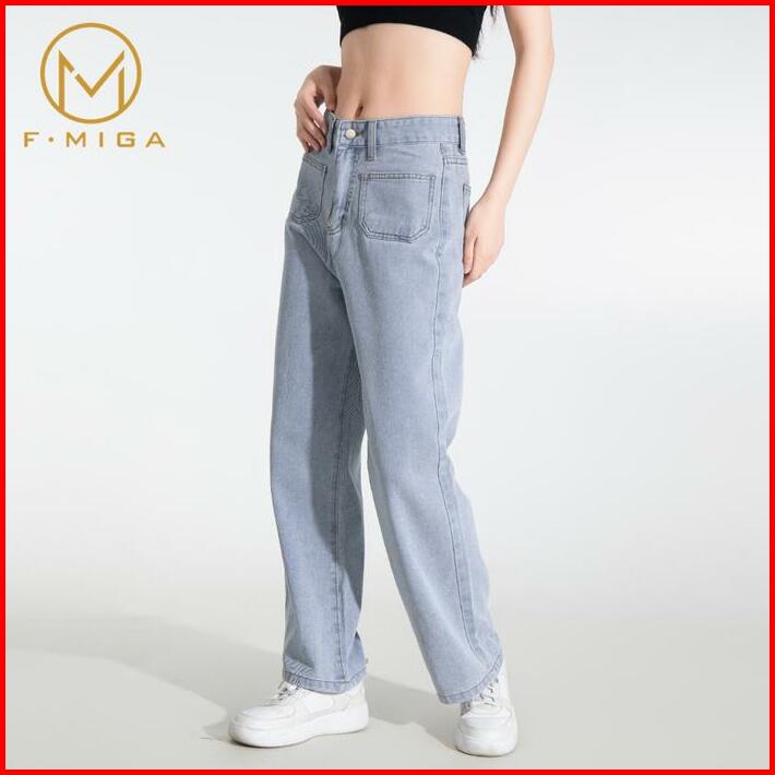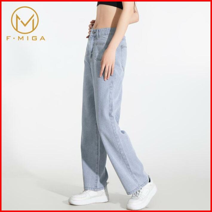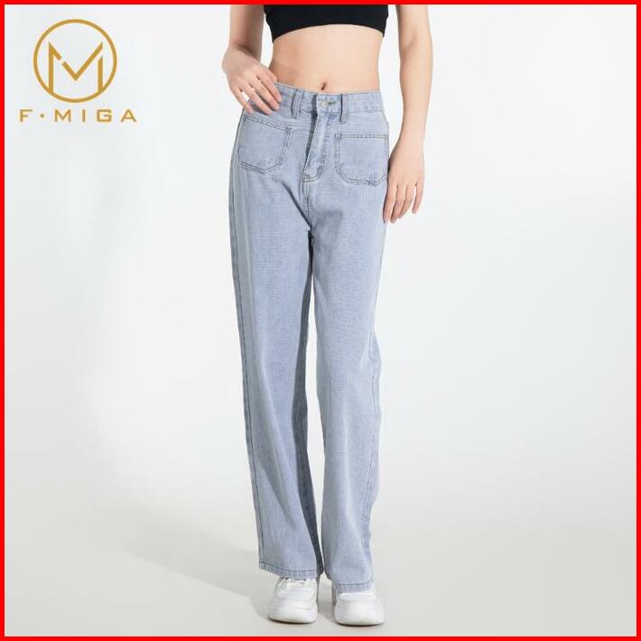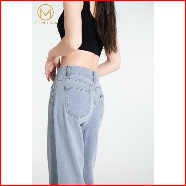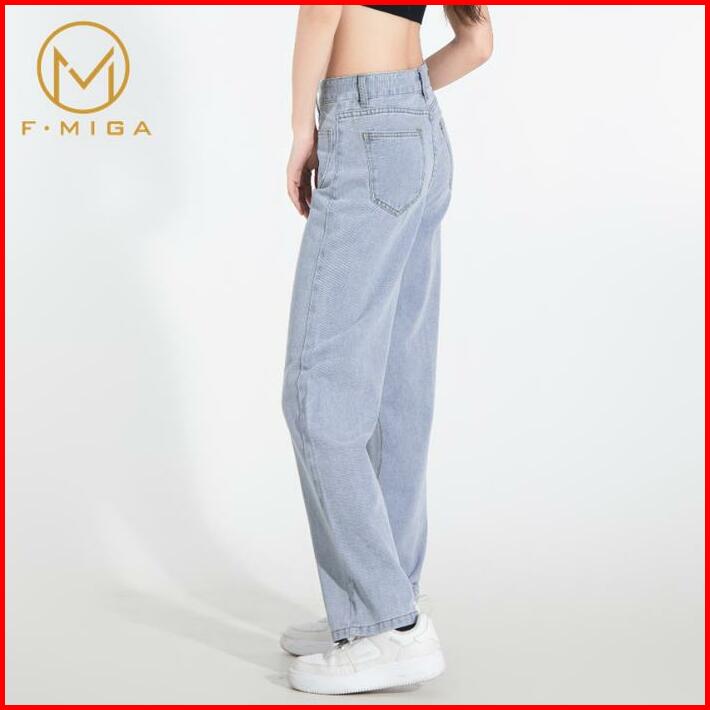 F Miga C34 Wanita Korean Style Kulot Boyfriend High Waist Bagy Wide Leg Straight Panjang Denim Loose Celana Jeans Wanita