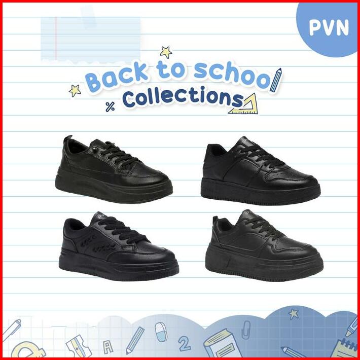 Pvn Rora Sneakers Wanita Sepatu Sekolah Hitam Polos Black 335