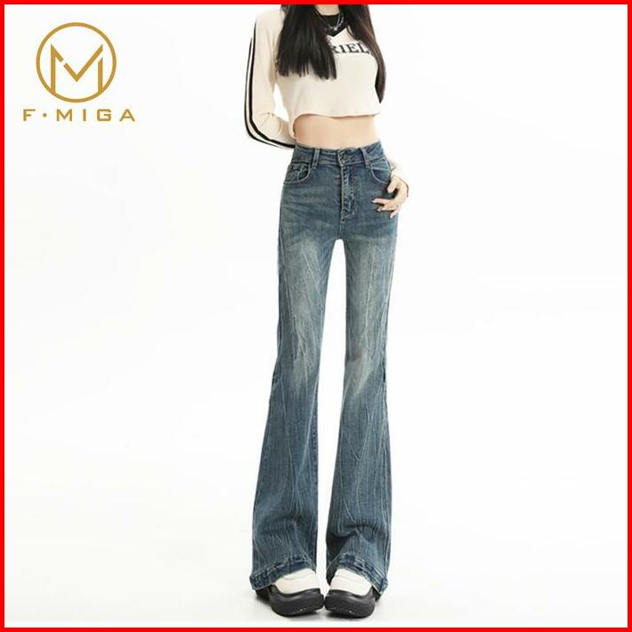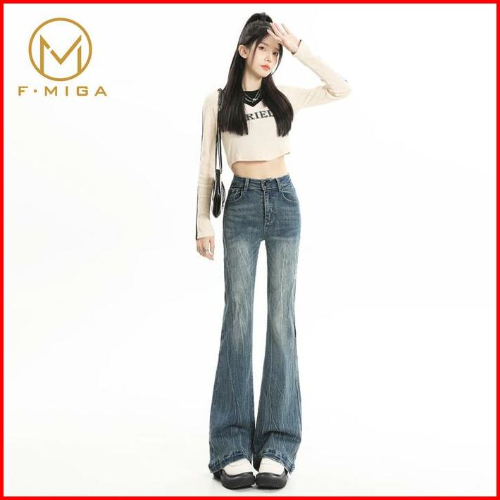 F Miga C137 Korean Style High Waist Cutbray Flare Stretch Celana Jeans Denim Panjang Wanita