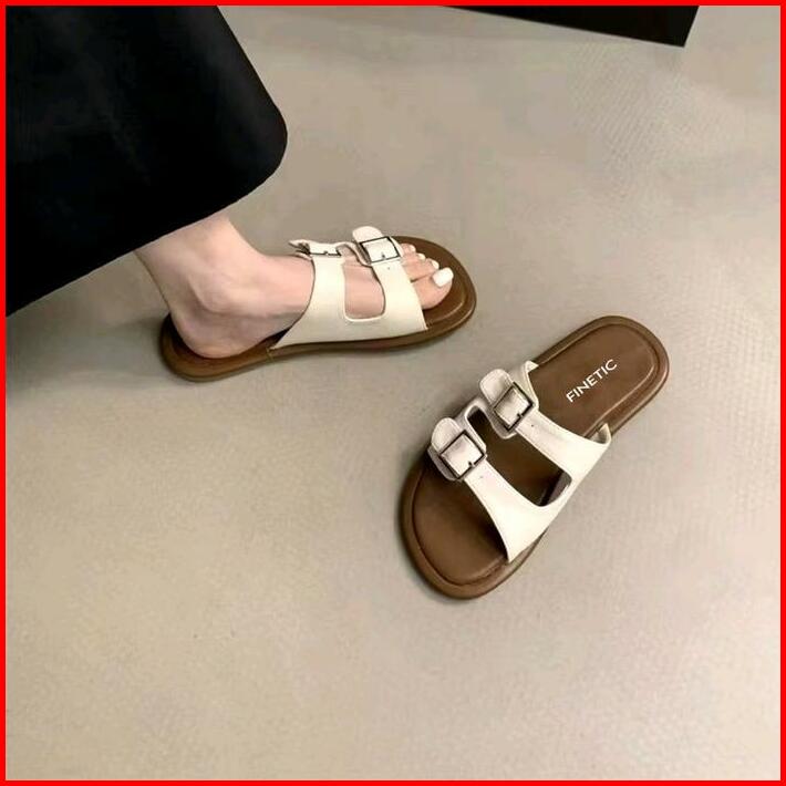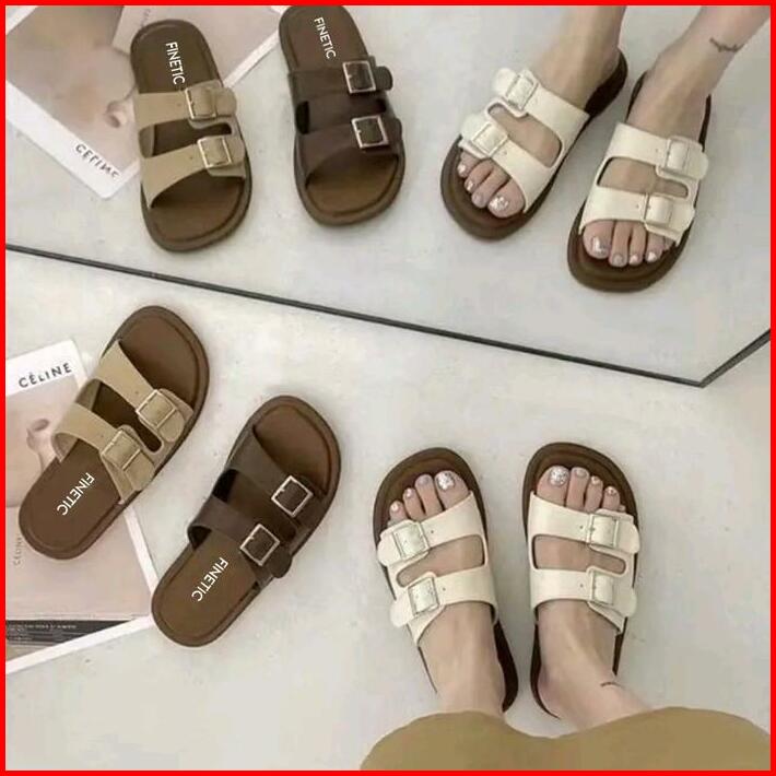 Finetic Sandal Kasual Wanita Model Terbaru Anti Slip Sendal Flatbed Cewek Karet