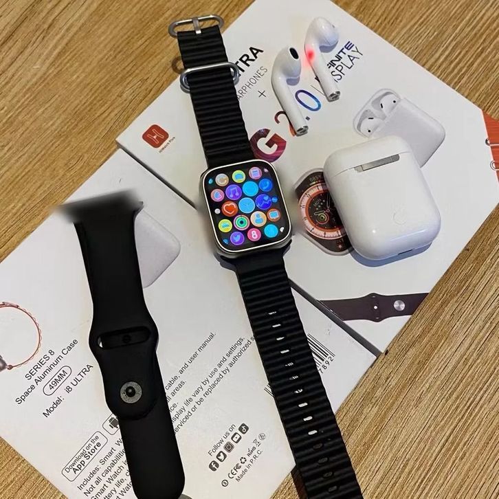 Smartwatch i8 Ultra Watch 8 Free 2 tali Plus Earphone tws Full layar ada kalkulator