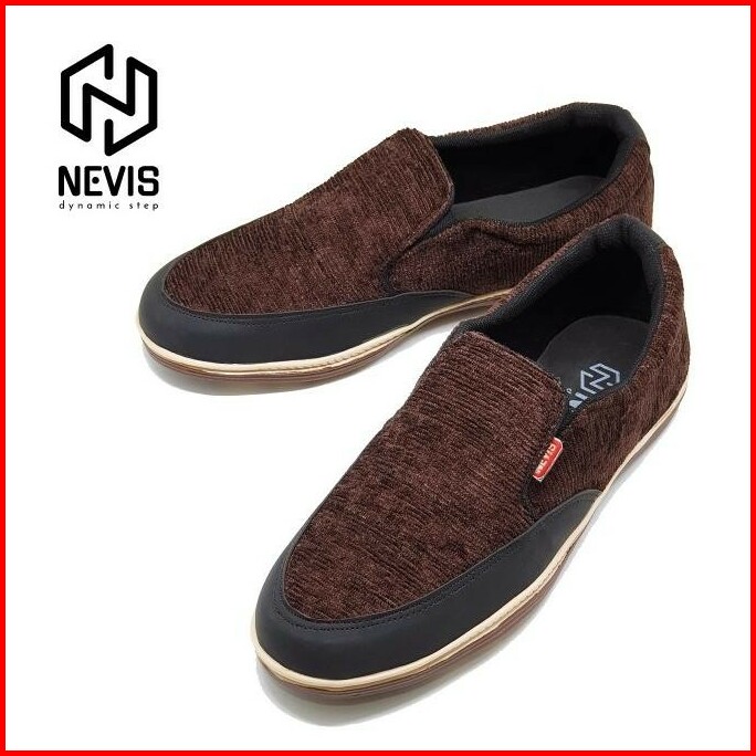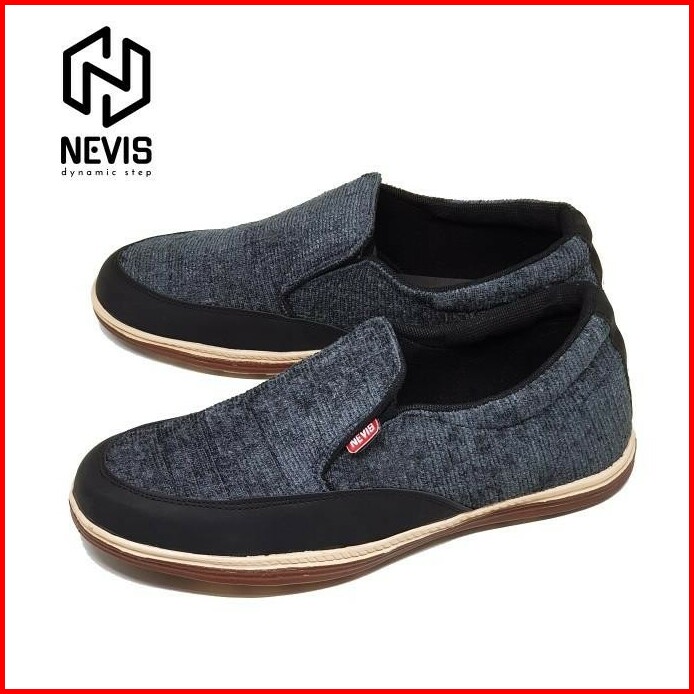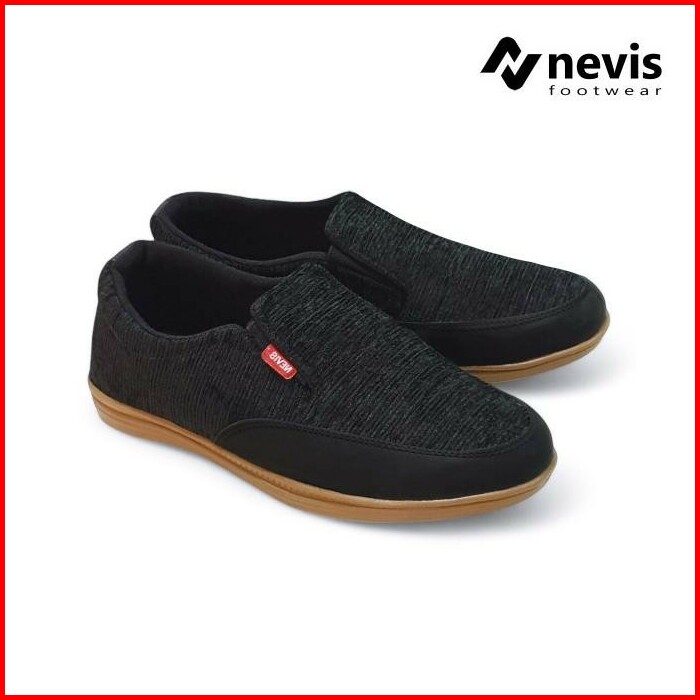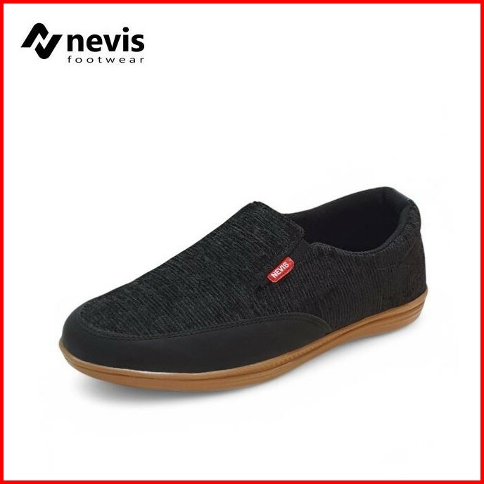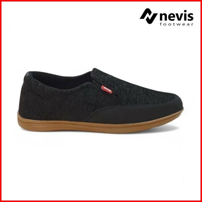 Sepatu Slip On Pria Nevis Nvs 02 Casual Kerja Sekolah Original Hitam