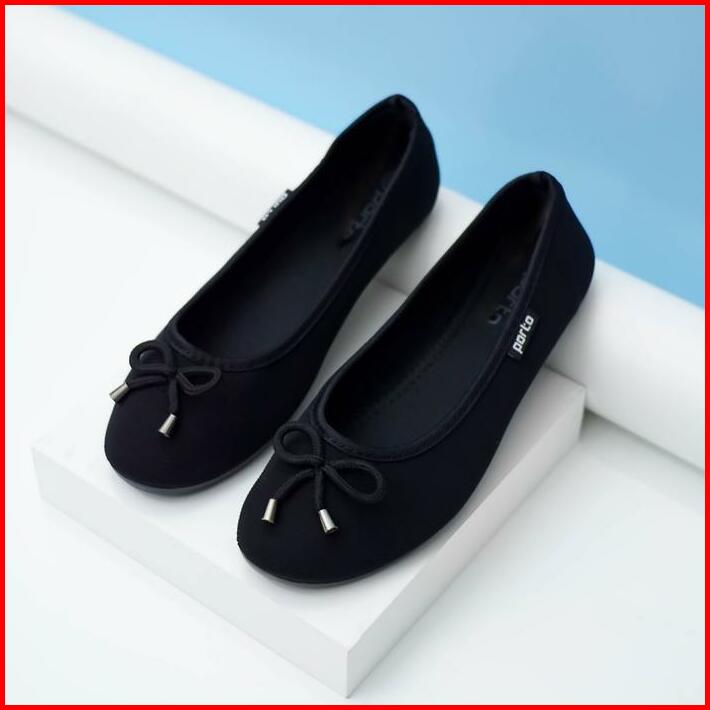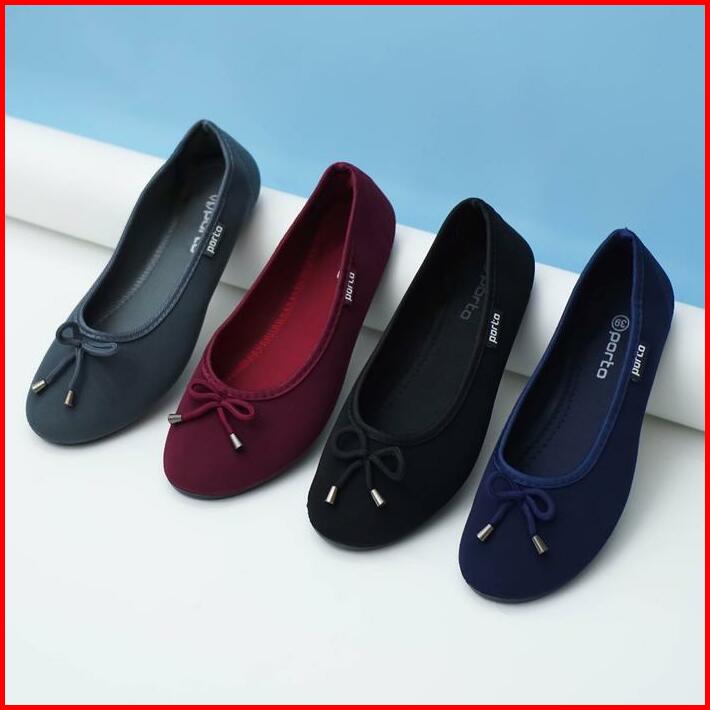 Porto Ba202l Sepatu Flat Wanita Untuk Kuliah Kerja Kantor Casual Bahan Kain Kanvas Tali Pita
