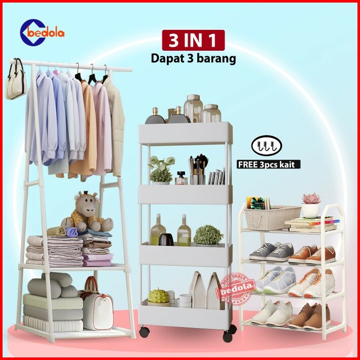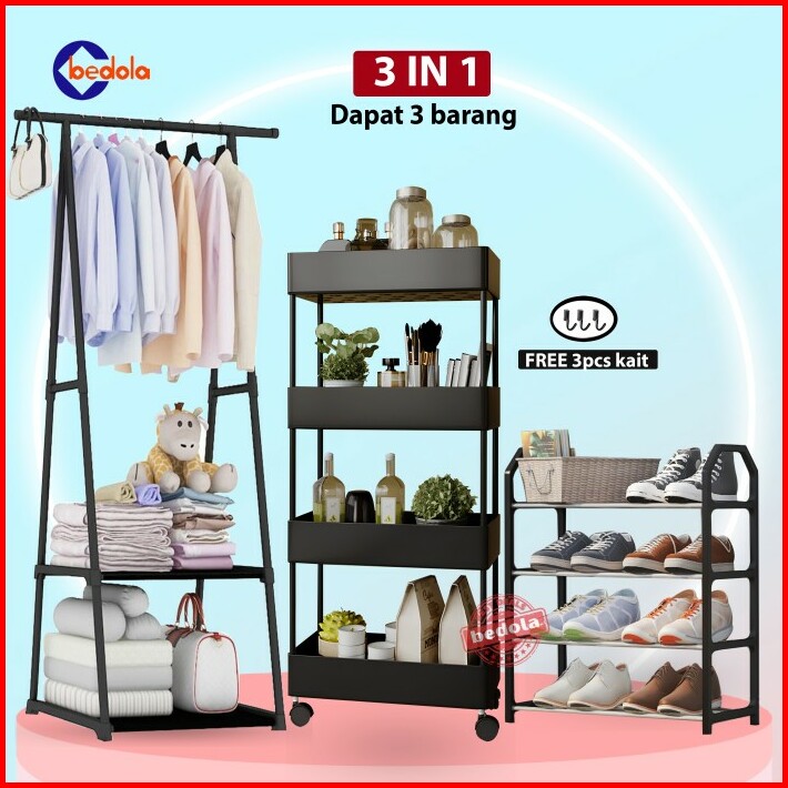 Bedola Combo 3 In 1 Triangle Rak Baju Square Rak Susun Serbaguna 4 Tingkat Rak Sepatu 4 Tingkat