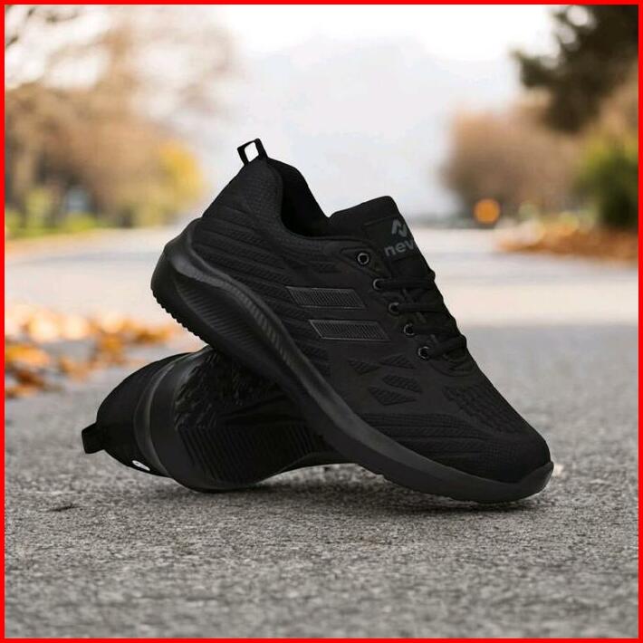 Sepatu Pria Jumbo Big Size 39-49 Nevis Hugo Full Black Hitam Polos Sport Running Sekolah Kerja Cowok Sneakers Casual Sho