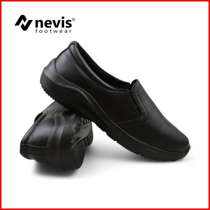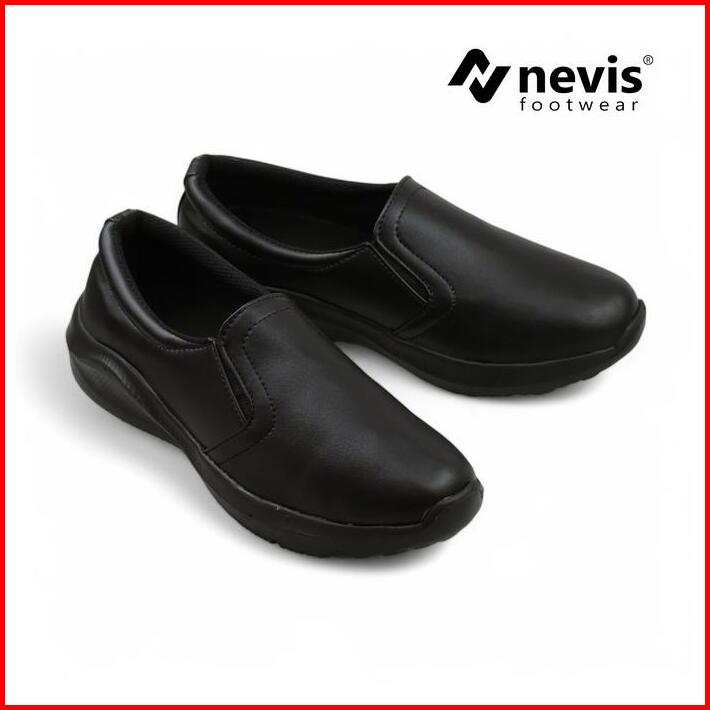 Sepatu Slip On Pria Nevis Franco Jumbo Big Size 39-49 Full Black Hitam Polos Kerja Sekolah Kasual Flat Shoes Sneakers Ku