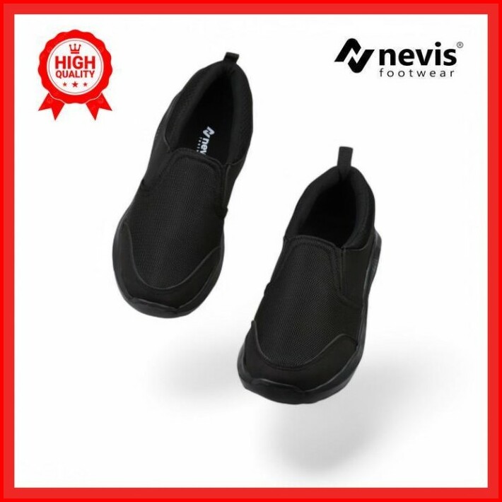 Nevis Sepatu Pria Slip On Jumbo 44-49 Nvs 87 Sekolah Kerja Full Hitam Best Produk