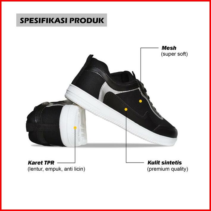 Nevis Sepatu Sneakers Casual Pria Wanita Adam Kets Sekolah Kuliah Hitam Karet Shoes Kasual Snekers Black Kerja