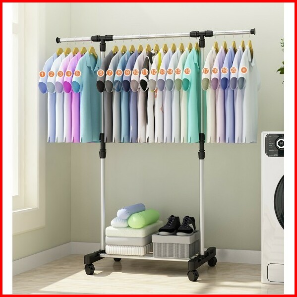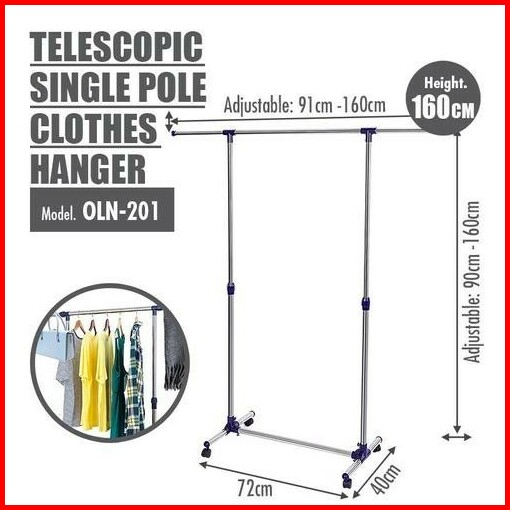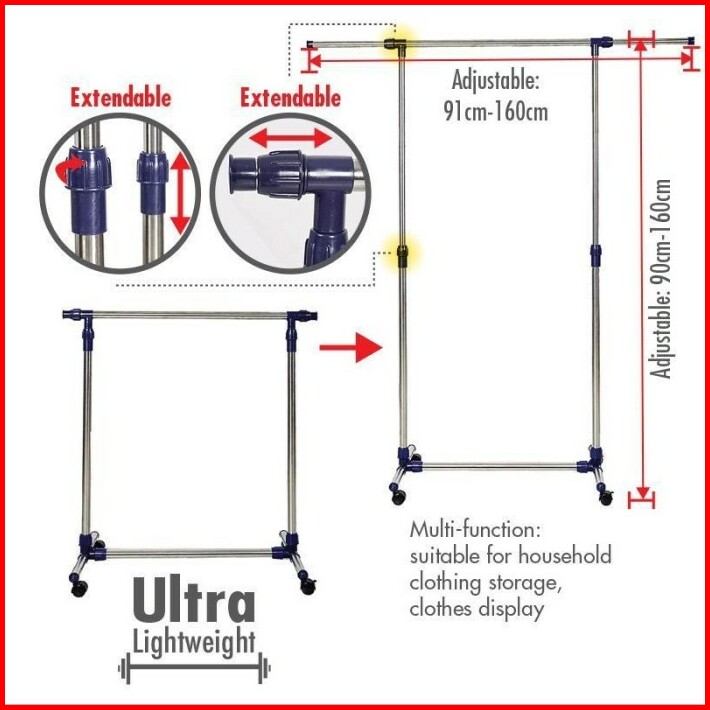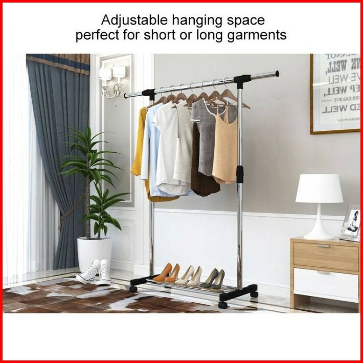 Gantungan Baju Berdiri Stand Hanger Single Jemuran 4 Roda Stainless