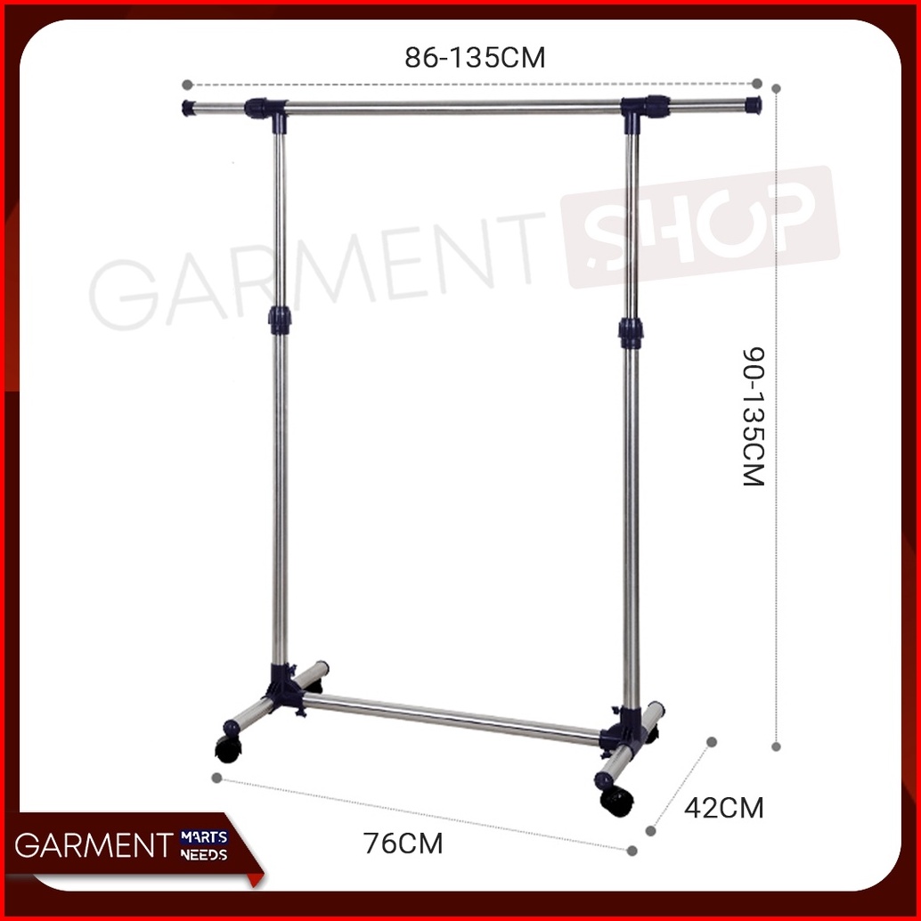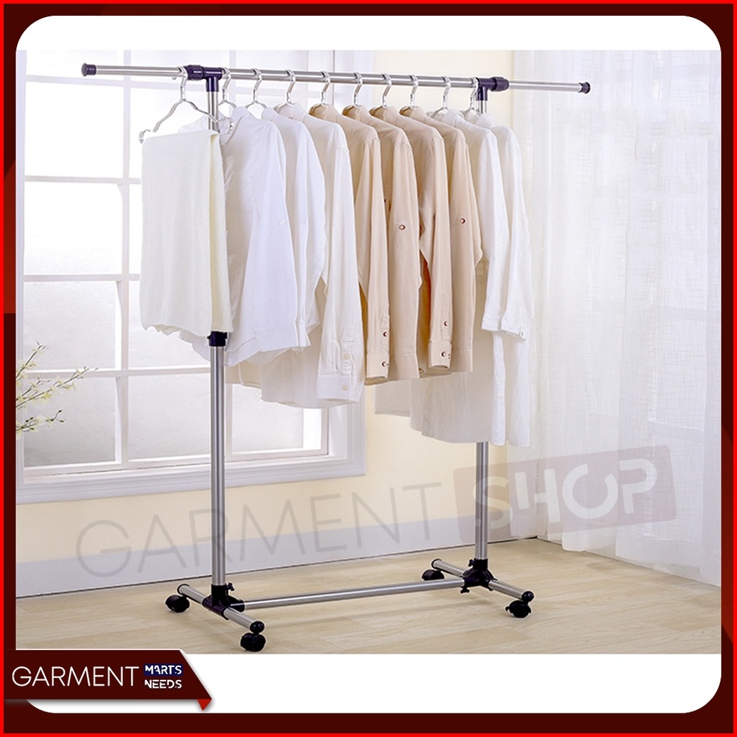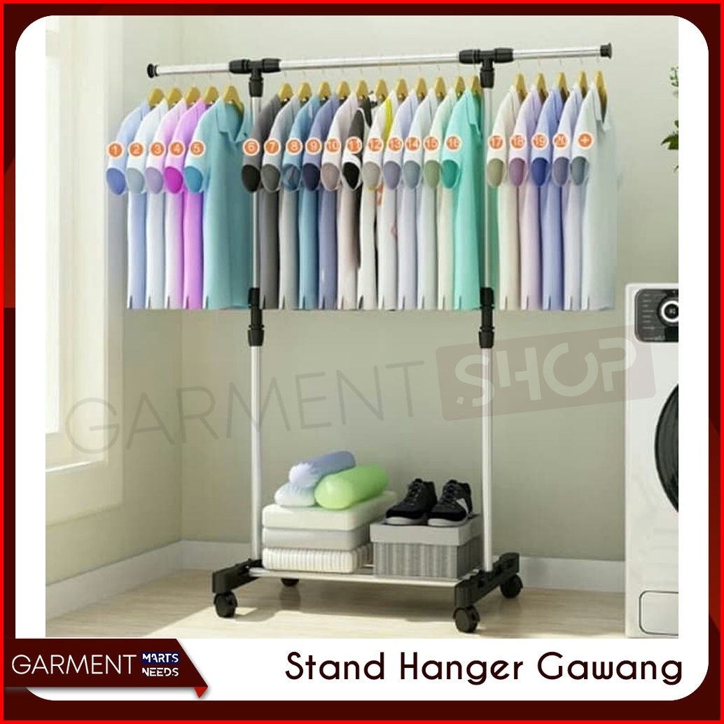 Gawang1 - Stand Hanger Single Gantungan Jemuran Baju 4 Roda
