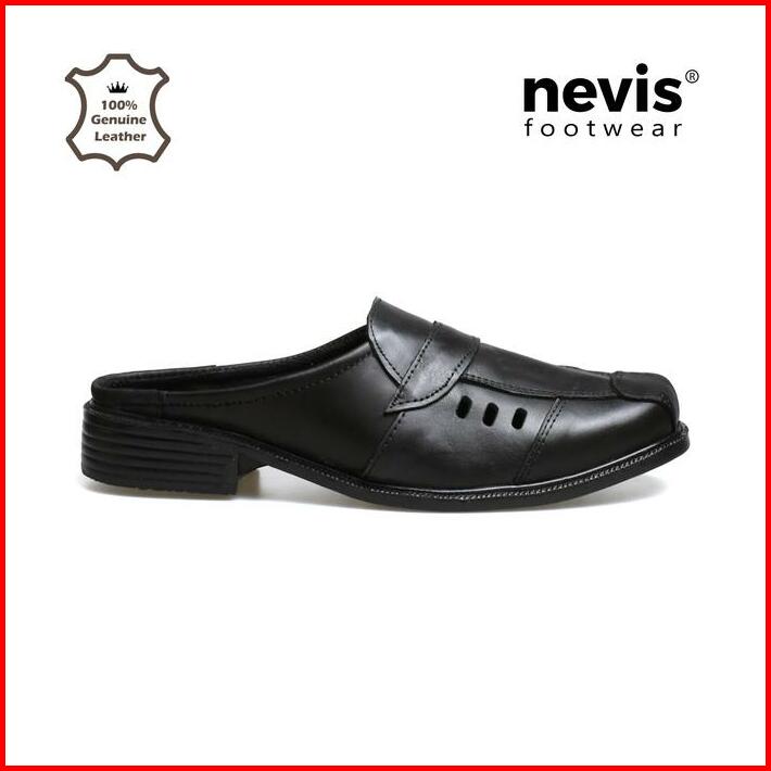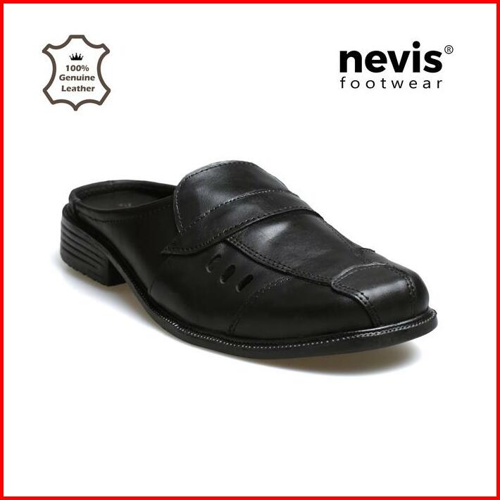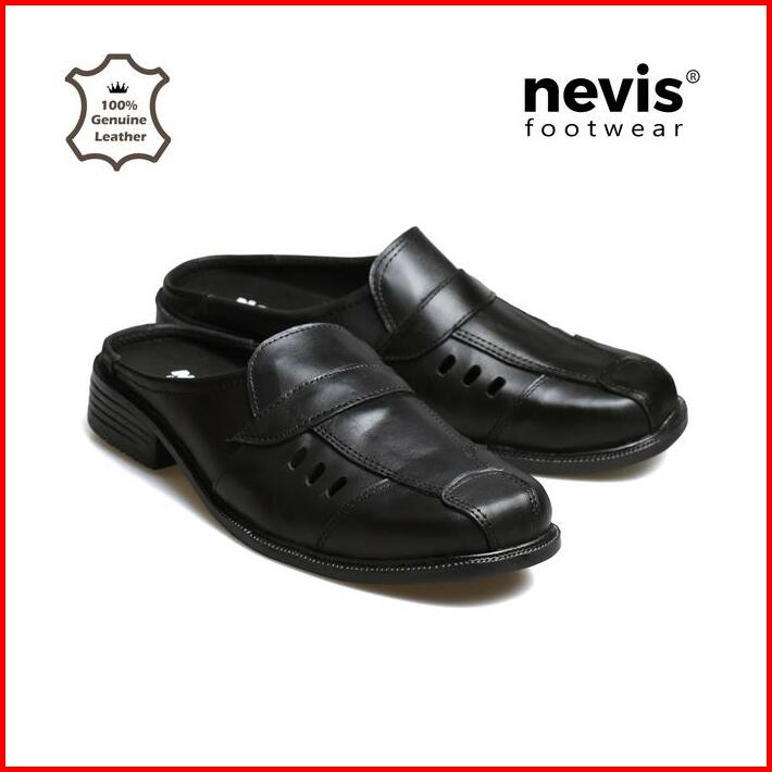 Nevis Sepatu Sandal Bustong Pablo Slip On Slop Selop Pria Kulit Sapi Asli Hitam Shoes Sendal