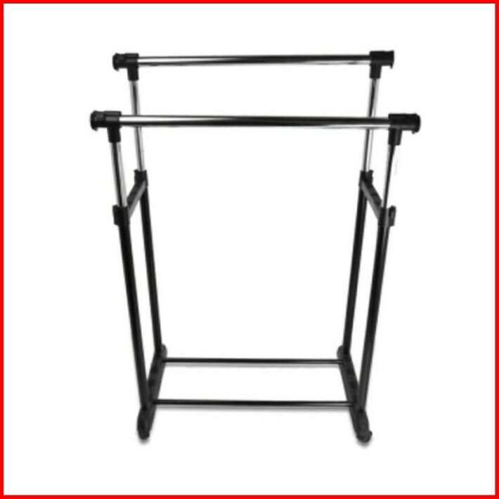 Gantungan Baju Berdiri Stand Hanger Rak Double Roda 4 Stainless Stell