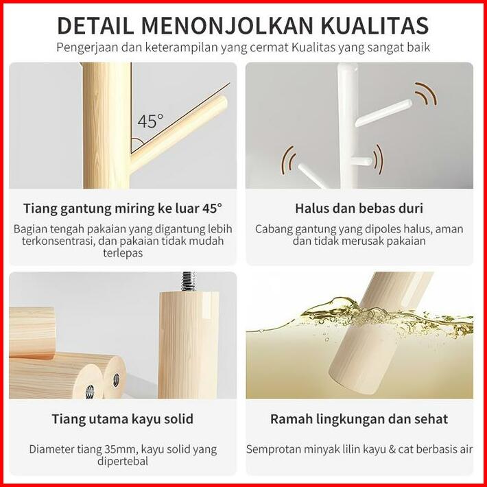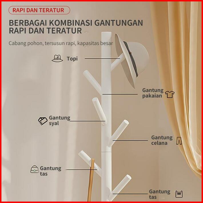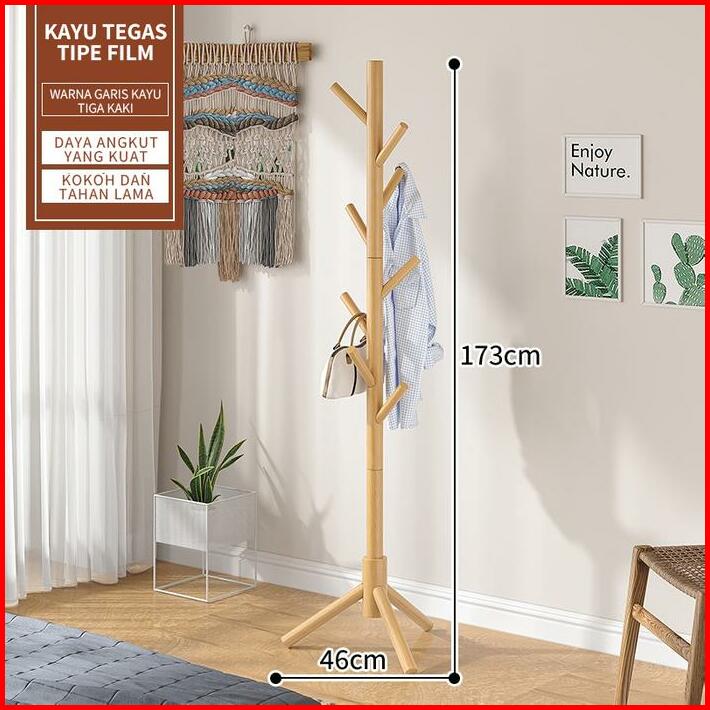 Gantungan Baju Berdiri Rak Penyimpanan Tas Rak Gantungan Tger Baju Stand Hanger Rak Mantel Kayu Gantungan Jilbab Rak Top