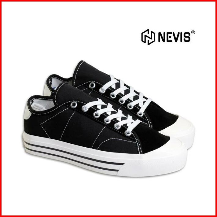 Nevis Boston Sepatu Sneakers Casual Pria Wanita Sepatu Kets Sekolah Cowok Cewek Hitam Putih Karet Shoes
