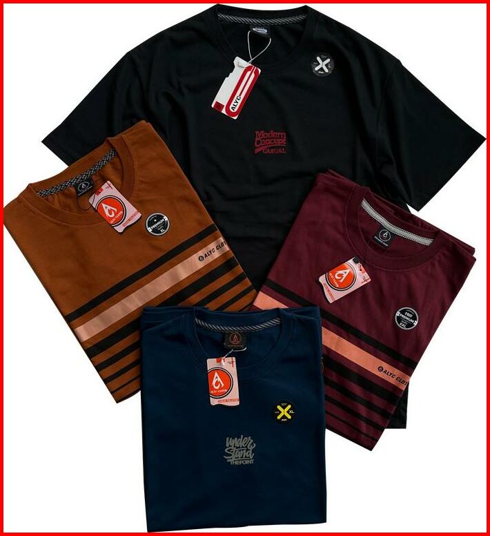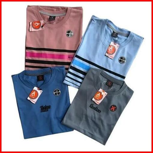 Paket 4 Pcs Kaos Kombinasi Strip Warna Acak Distro Dewasa Ready Size M L Xl Xxl Xxxl Casual Katun Nyaman Pria Keren Poly