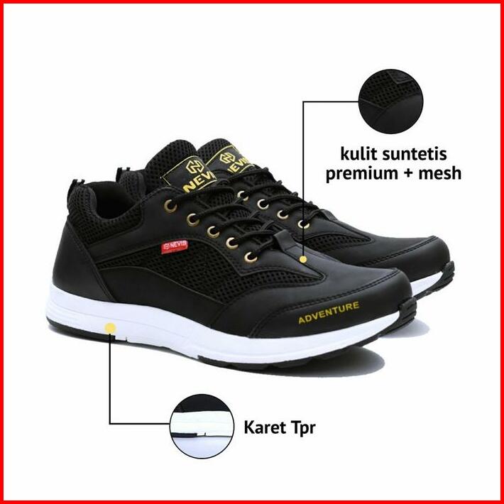 Nevis Sepatu Sneakers Casual Pria Nvs 05 Kerja Sekolah Kuliah Outdoor Shoes Karet Snekers Sport Kasual Hitam Black Runni