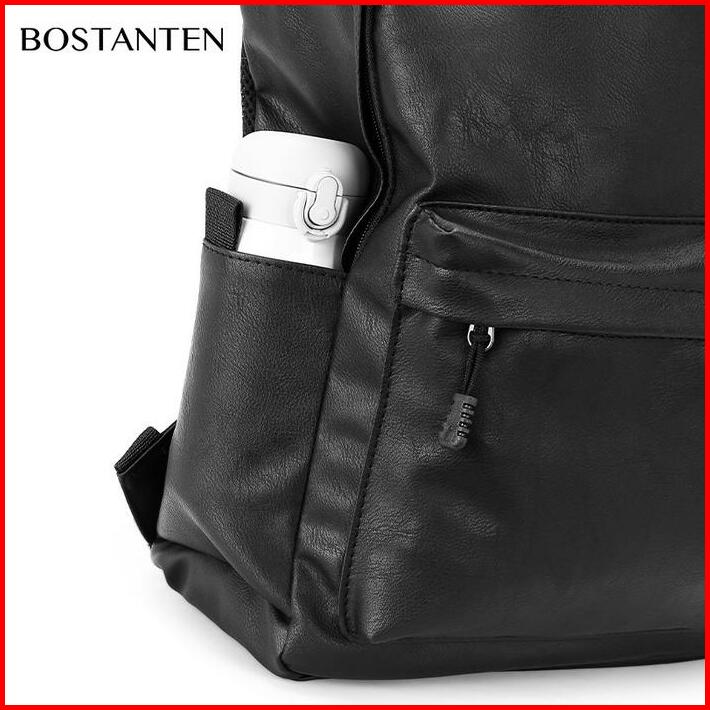 Bostanten Ransel Kasual Kulit Pu Warna Hitam Tas Sekolah Siswa Tas Kerja