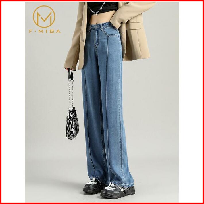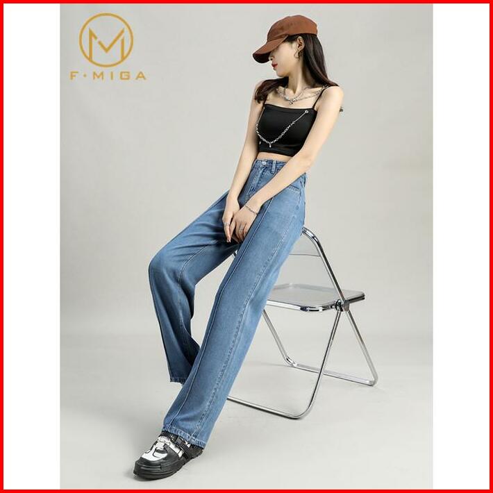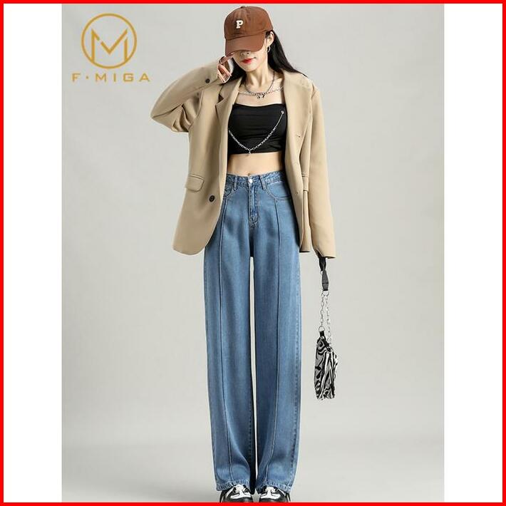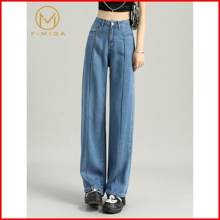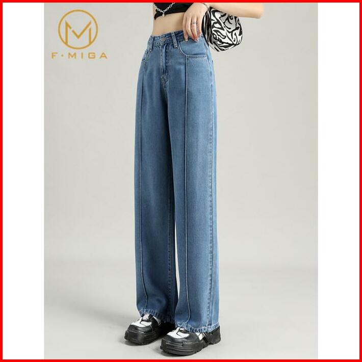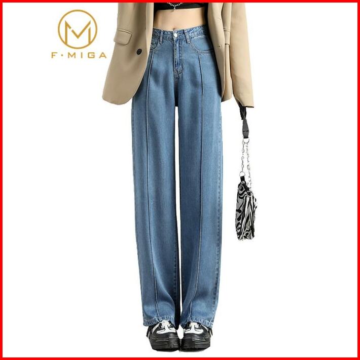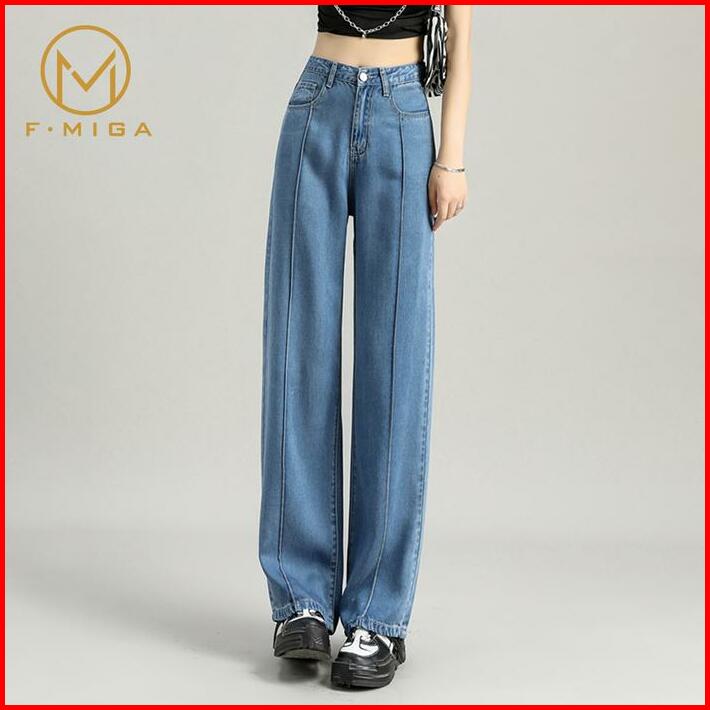 F Miga C26 Korean Style High Waist Celana Boyfriend Jeans Loose Wide Leg Panjang Celana Jeans Wanita