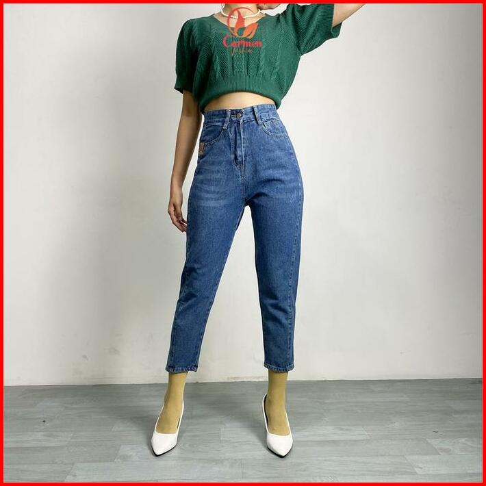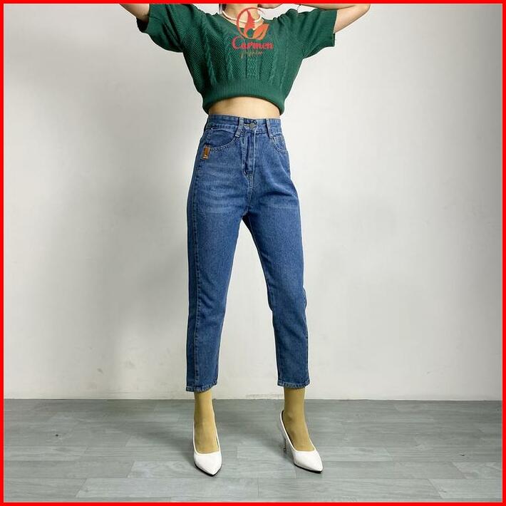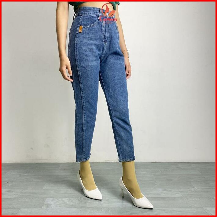 Celana Panjang Highwaist Wanita Boyfriend Jeans Fashion Kekinian Cf P585 Biru Abu