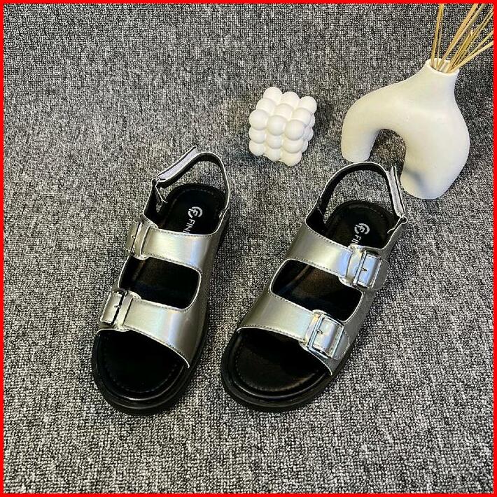 Finetic Sandal Platform Kekinian Wanita Silver Alea Series Sendal Karet Shoes