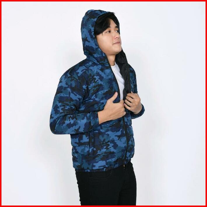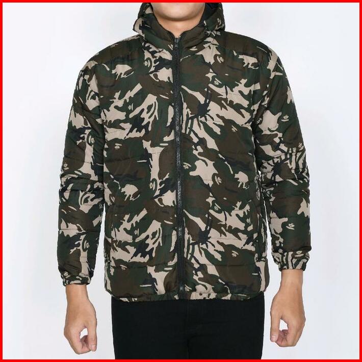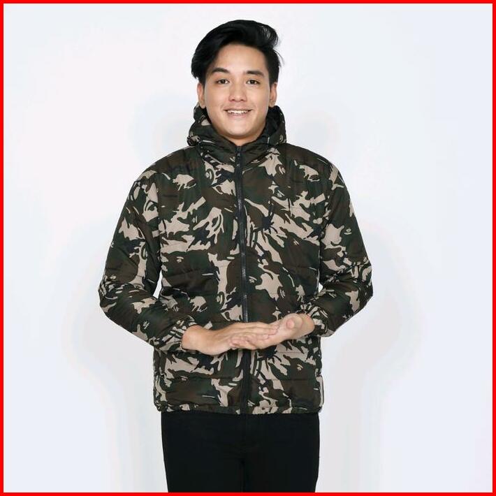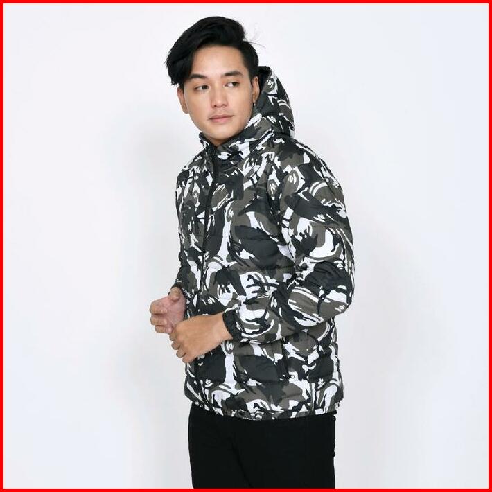 Divens Jaket Gelembung Pria Puffer Outdoor Gunung Musim Dingin Waterproof Motif Army Parasut
