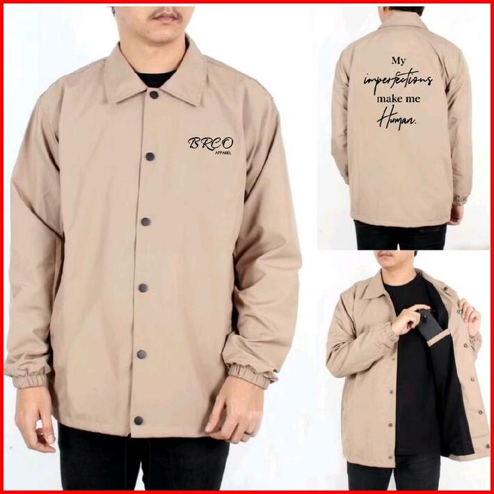 Brco Jaket Coach Sablon Pria Wanita Premium Parasut Waterproof Distro Keren Hitam Edition