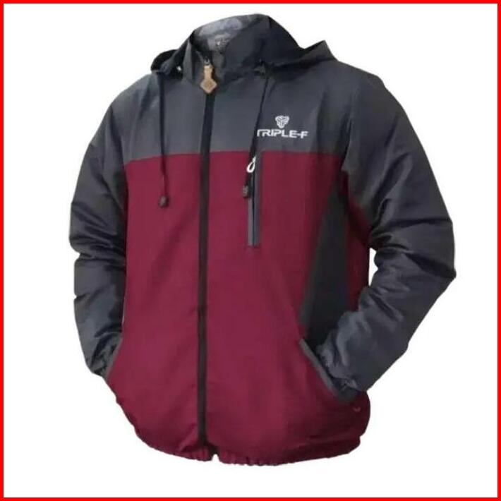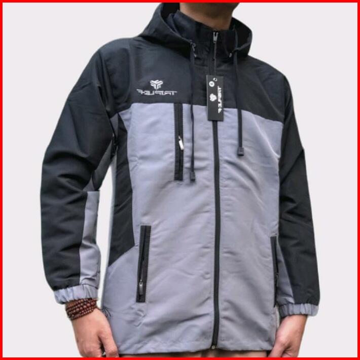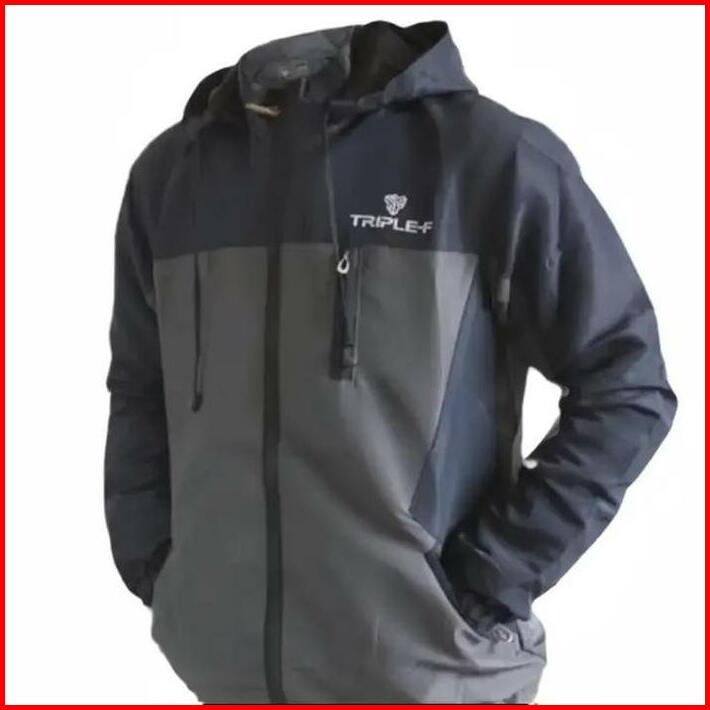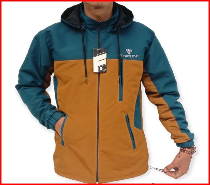 Jaket Outdoor Triple F Anti Air Waterproof Taslan Milky Dengan Hoodie Yang Bisa Dilepas