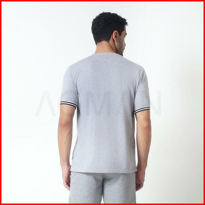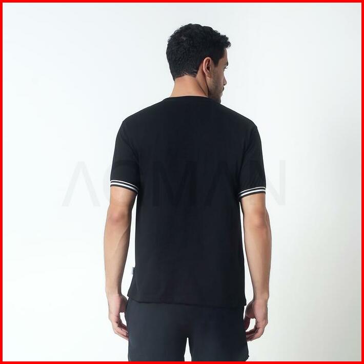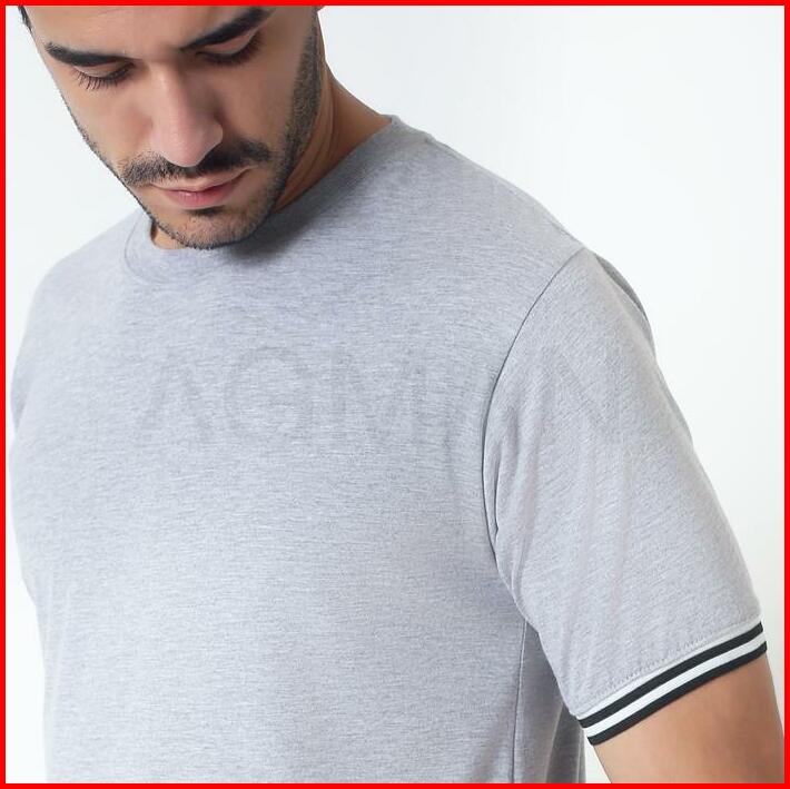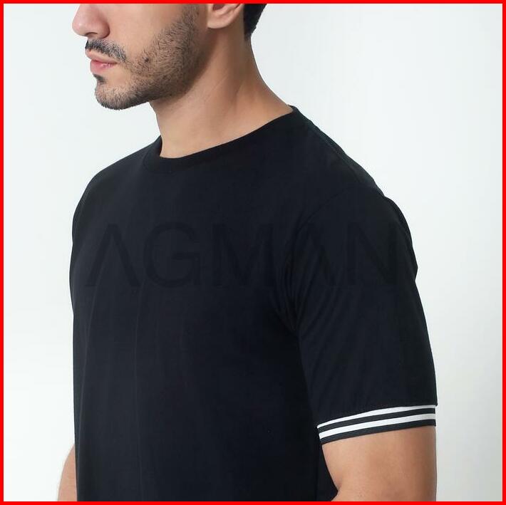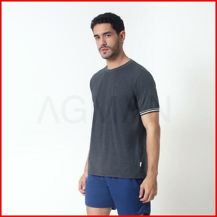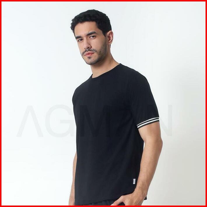 Agman Kaos Polos Slim Fit Pria Bahan Katun Lengan Pendek Manset Striped Nyaman Untuk Sehari-hari Karet Soft Dewasa Keren