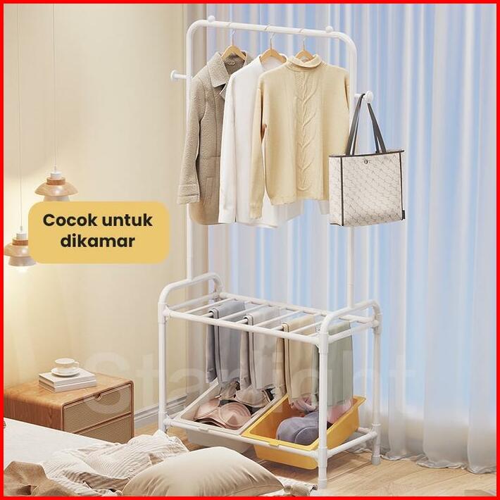 Starlight Rak Gantungan Baju Berdiri 2 Susun Stand Hanger Rak Troli Dorong Rak Sepatu Stand Hanger Gawang Baju Jemuran B