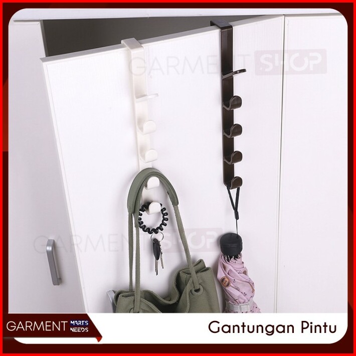 Gantungan Pintu Lemari Baju Topi Tas 5 Hook Tempel Berdiri Serbaguna