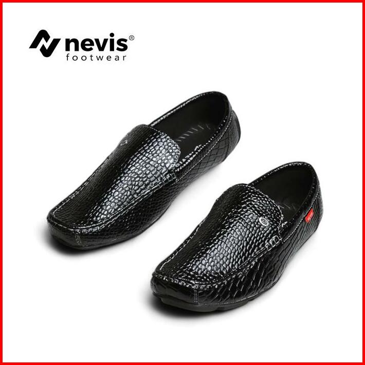 Nevis Sepatu Pria Slip On Demian Original Slop Formal Kerja Kantor Casual Hitam Coklat Tua Flat Shoes