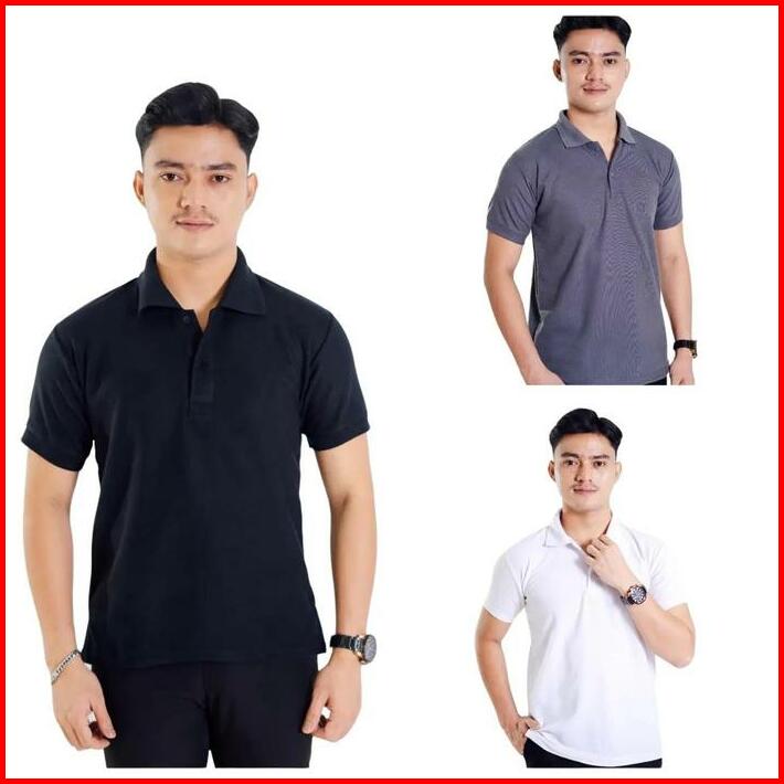 Vncentid Kaos Kerah Polo Shirt Pendek Kerah Katun Baju Polos Pria Dewasa Keren Cowok Hitam Distro