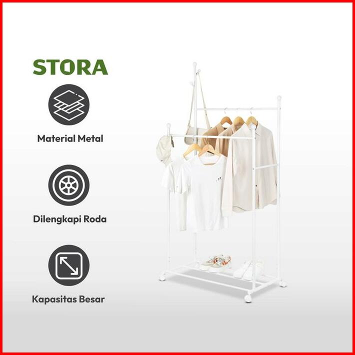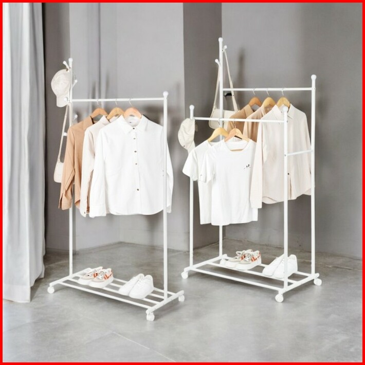 Azko Stora Gantungan Pakaian Dengan Rak Stand Hanger Gantungan Baju Berdiri Clothes Organizer Standing Clothing Rack