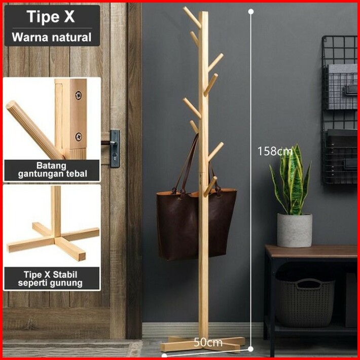 Baru Ih Stand Hanger Kayu Gantungan Berdiri Gantungan Baju Rack