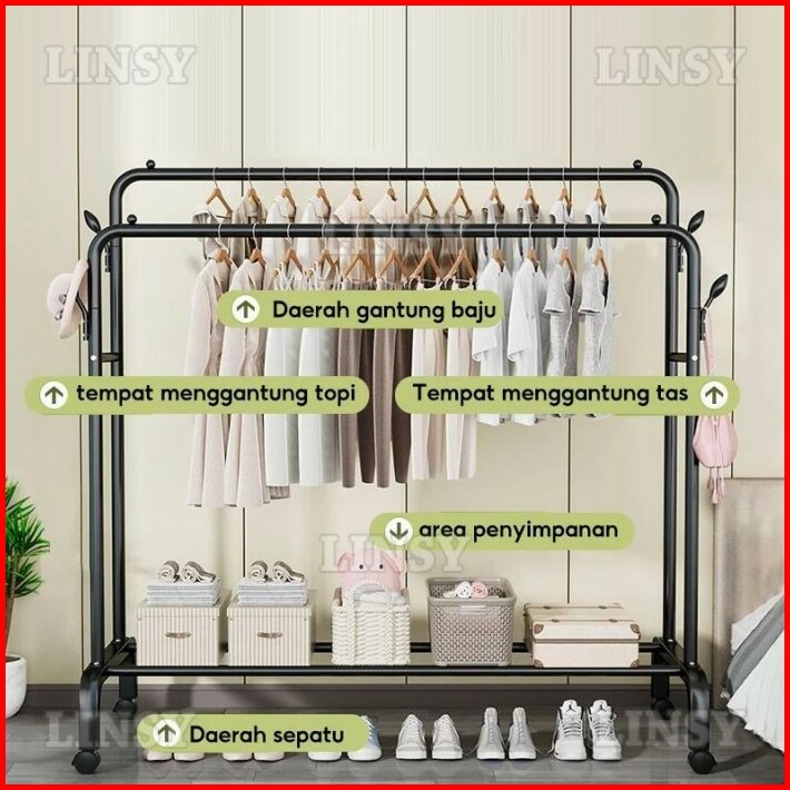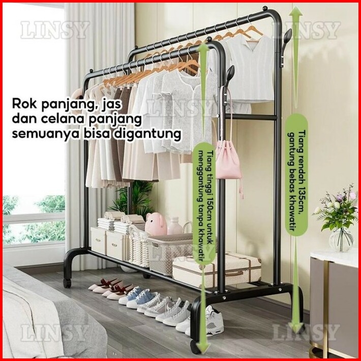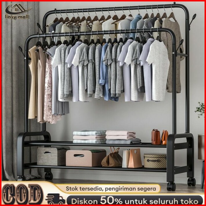 Stand Hanger Besi Rak Gantungan Baju Besi Gantungan Baju Berdiri Rak Baju Gantung Minimalis 150cm