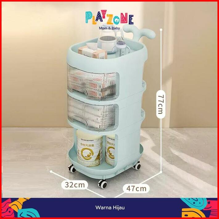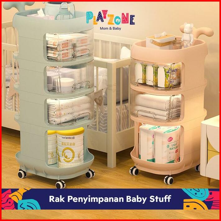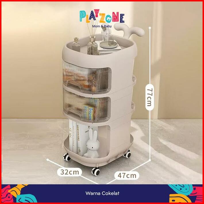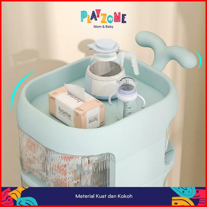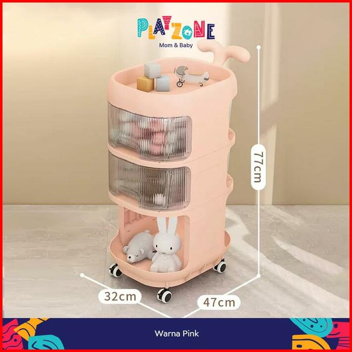 Pz Rak Troli Paus 4 Susun Roda Rak Penyimpanan Serbaguna Troli Penyimpanan Gagang Pink Plastik