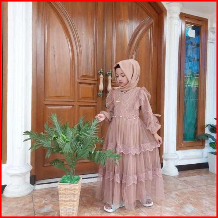 Gamis Anak Princess Barbie Terbaru Dengan Mutiara Variasi Tile Brukat