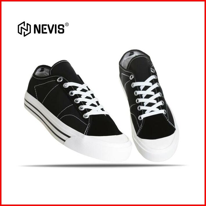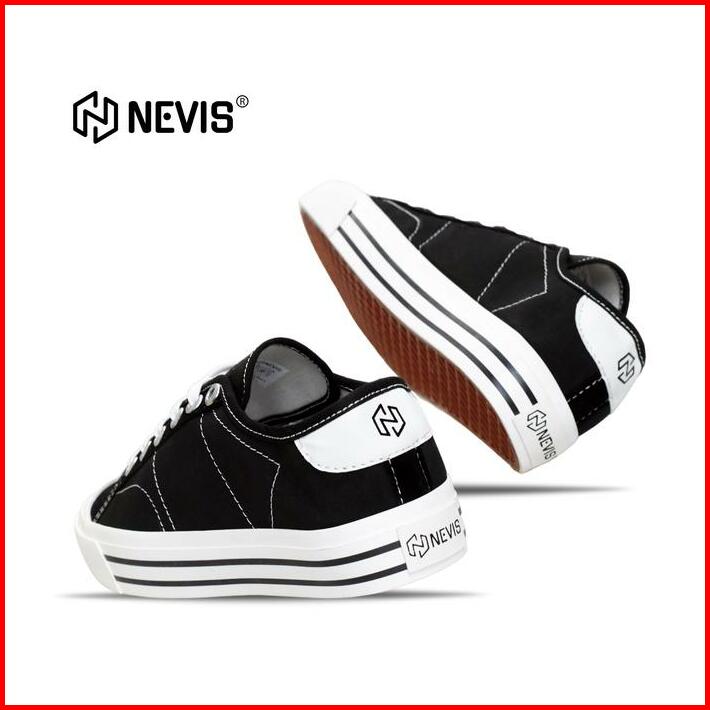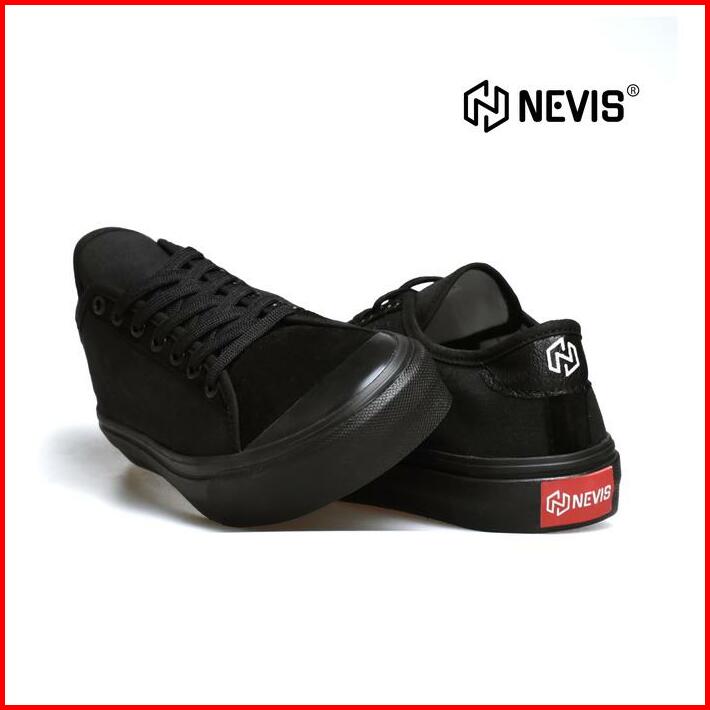 Sepatu Sneakers Casual Pria Wanita Nevis Boston Sepatu Sekolah Full Black Hitam Polos Original Karet Shoes