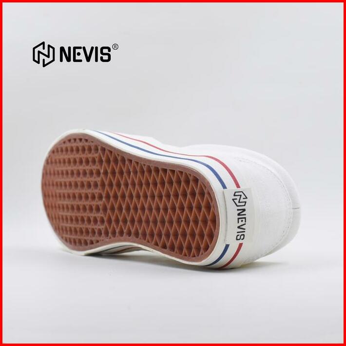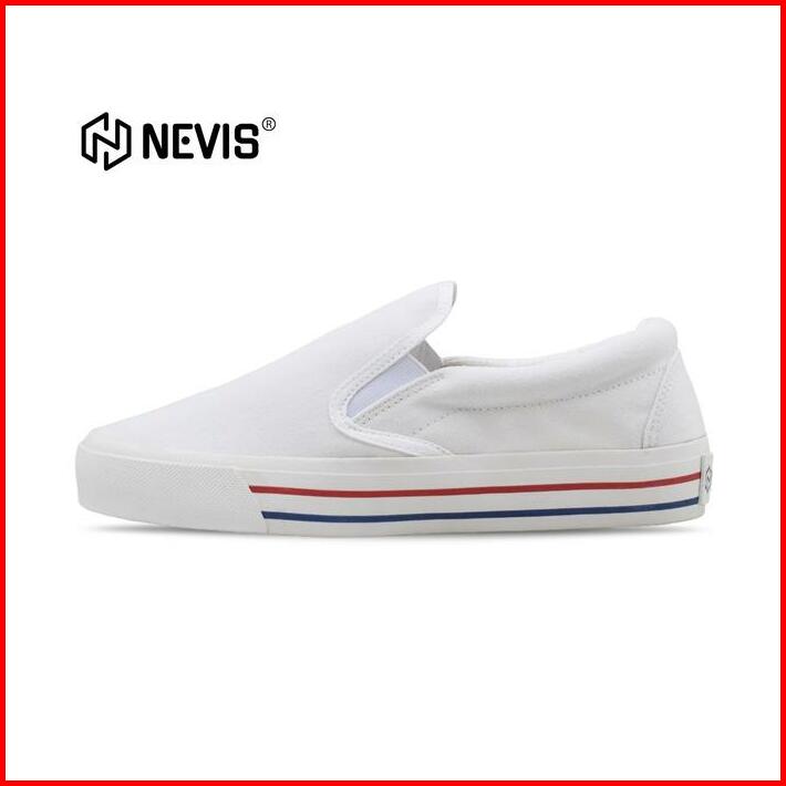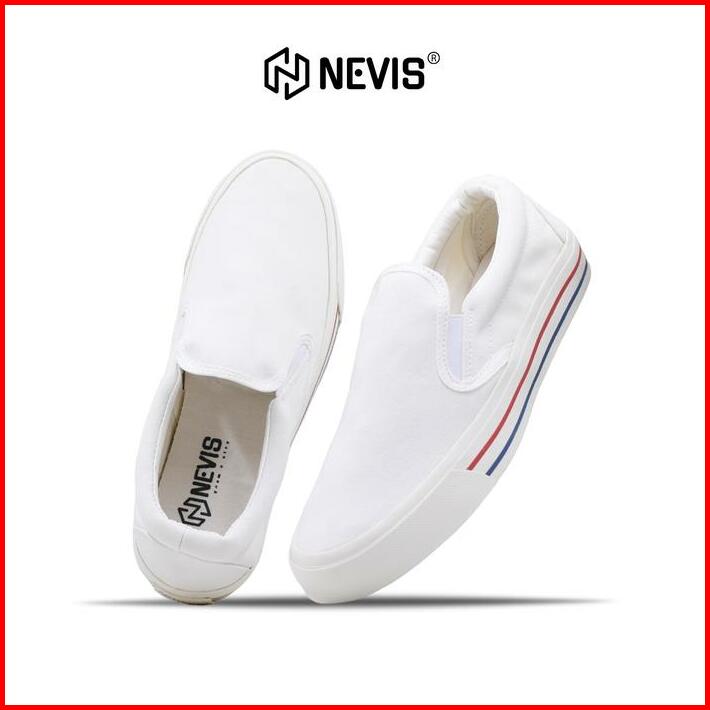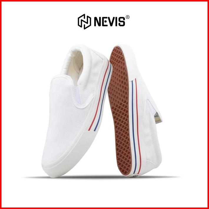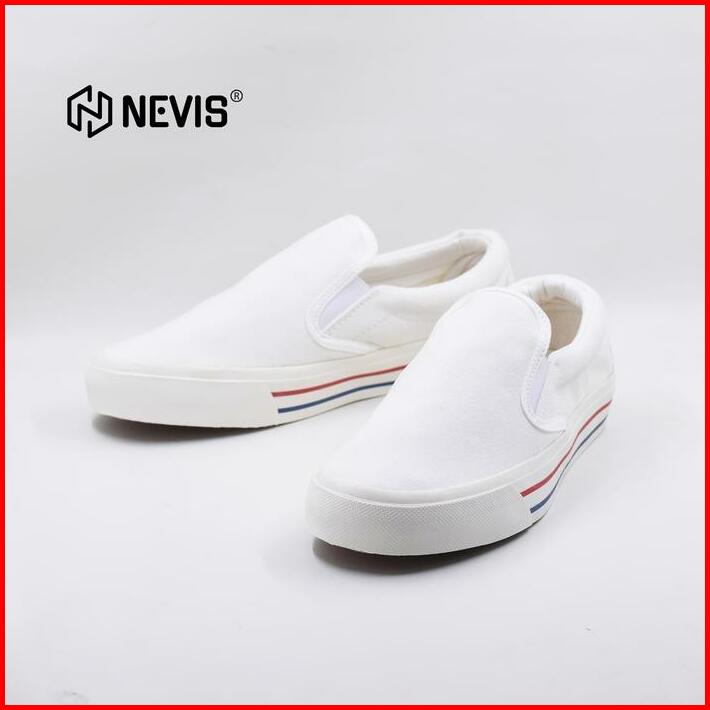 Nevis Sepatu Slip On Casual Pria Wanita Retro All White Putih Original Karet Flat Shoes Canvas Sneakers