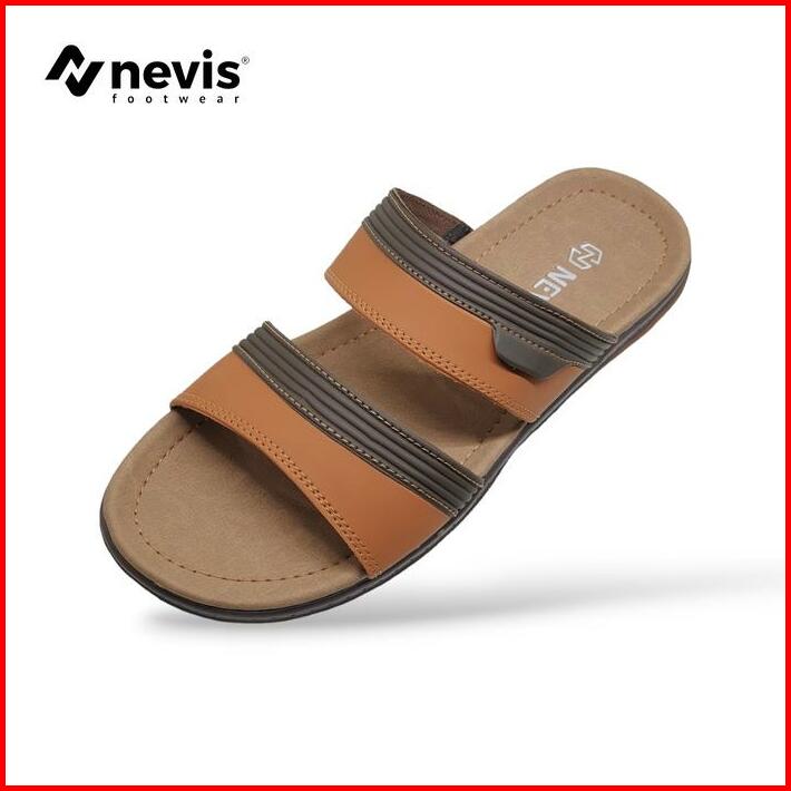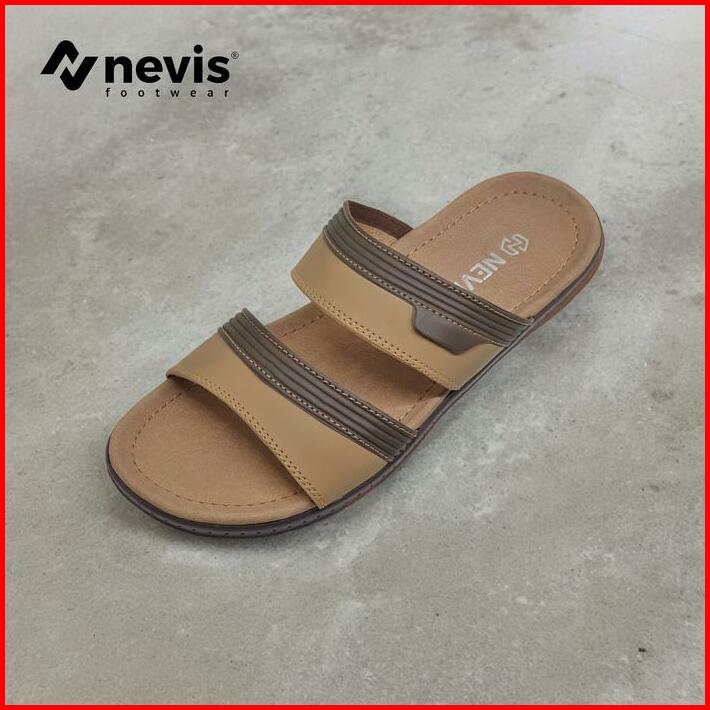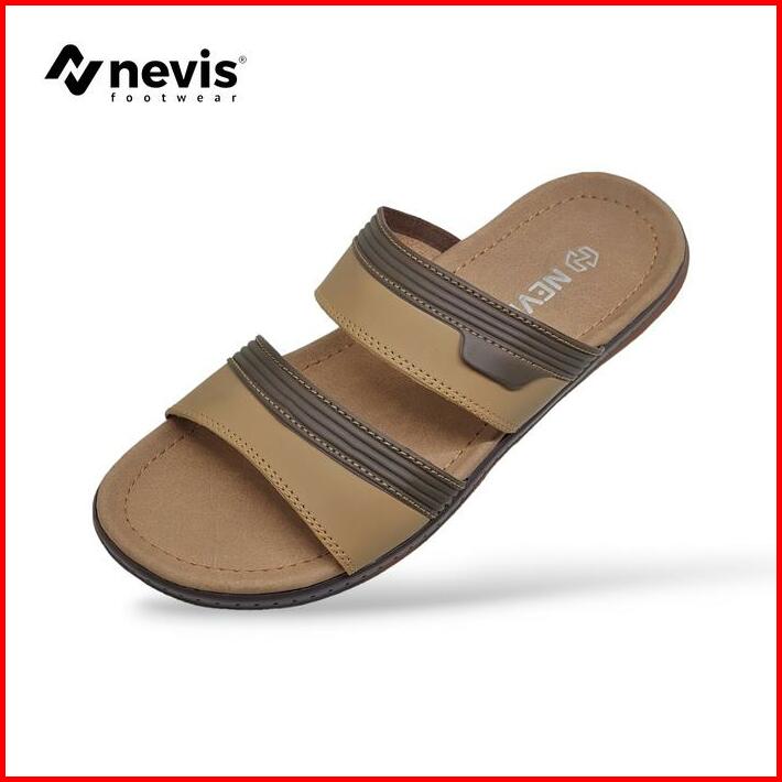 Sandal Pria Slop Original Nevis Nvs 12 Sendal Kulit Casual Santai Cowok Keren Bahan Tebal Jepit Coklat Hitam