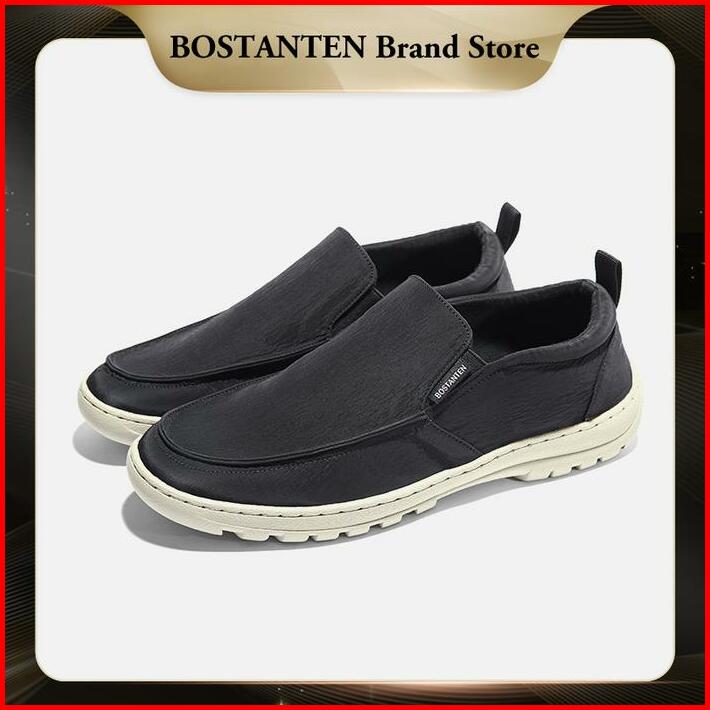 Bostanten Sepatu Pria Kasual Slip-on Sepatu Kanvas Water Resistence Khaki Hitam