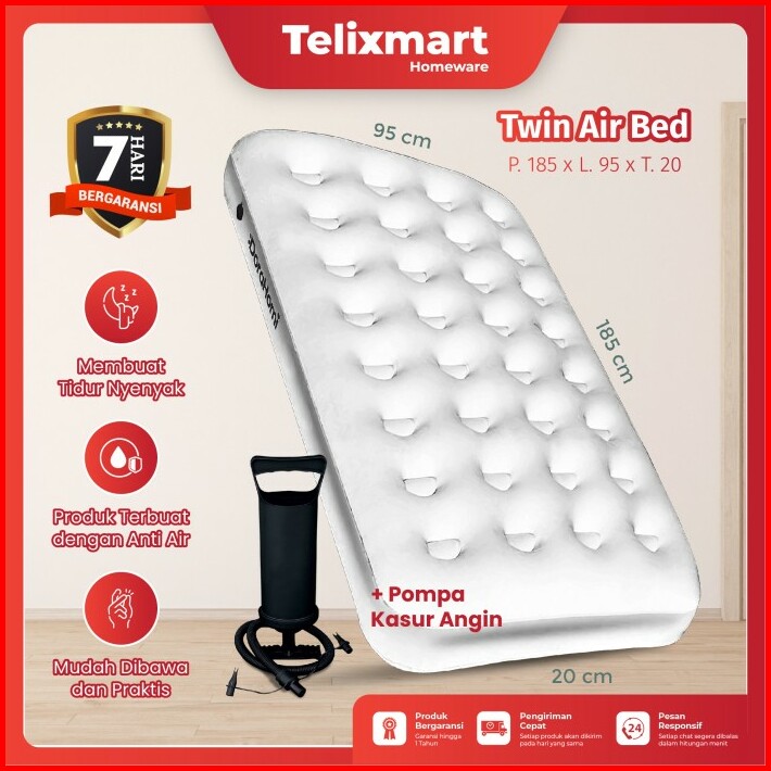 Kasur Angin Air Bed Gratis Pompa Ukuran Single Double Twin Anti Kempes