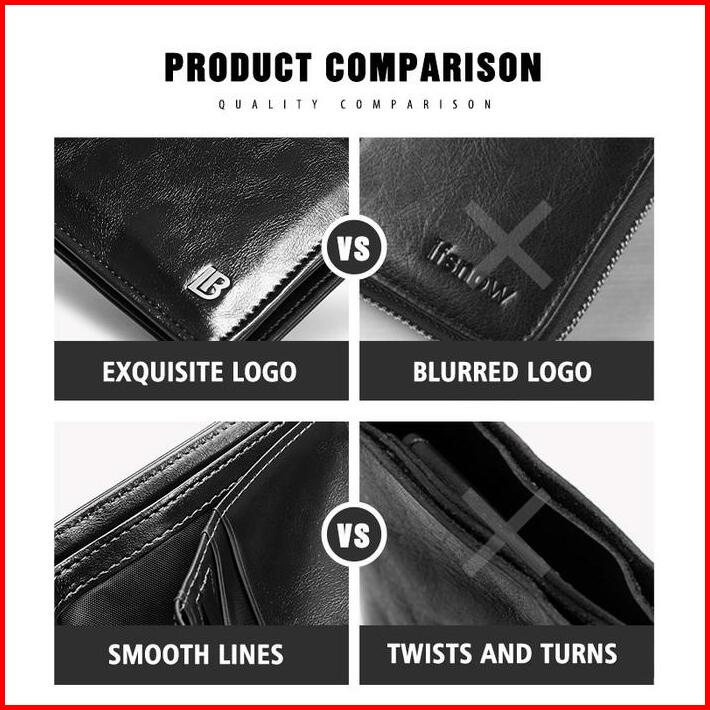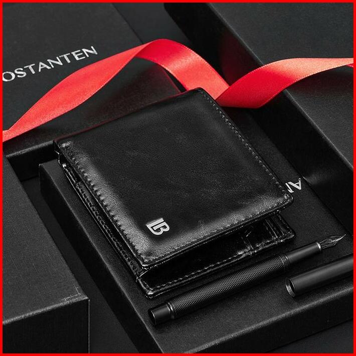 Bostanten Dompet Lipat Pria Koin Ritleting Bahan Kulit Pu Hitam Kopi Coklat