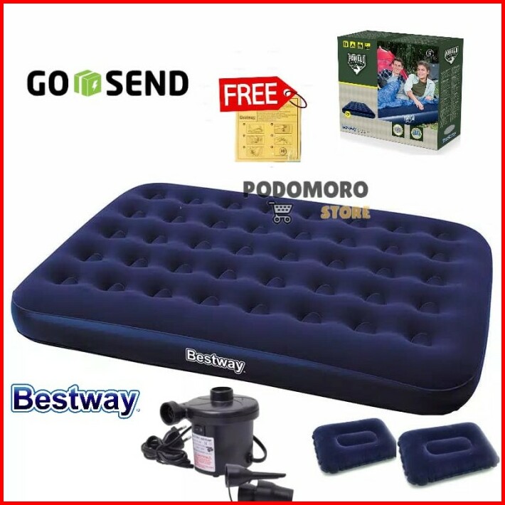 Paket Bestway 67002 Kasur Angin Double Biru Pompa Listrik Bantal Best