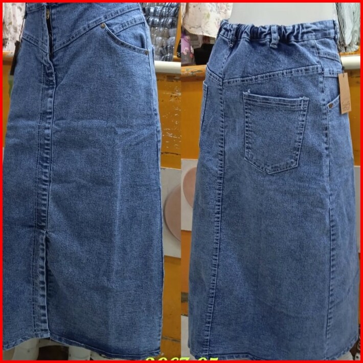 Rok Jeans Denim Wanita Span Slim Highwast Cargo Kekinian Belah Depan Tengah Korean Style