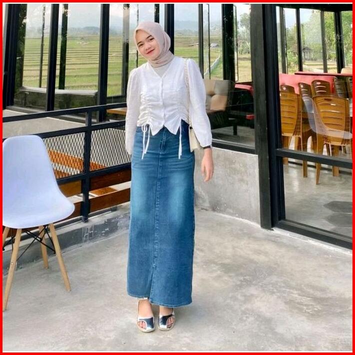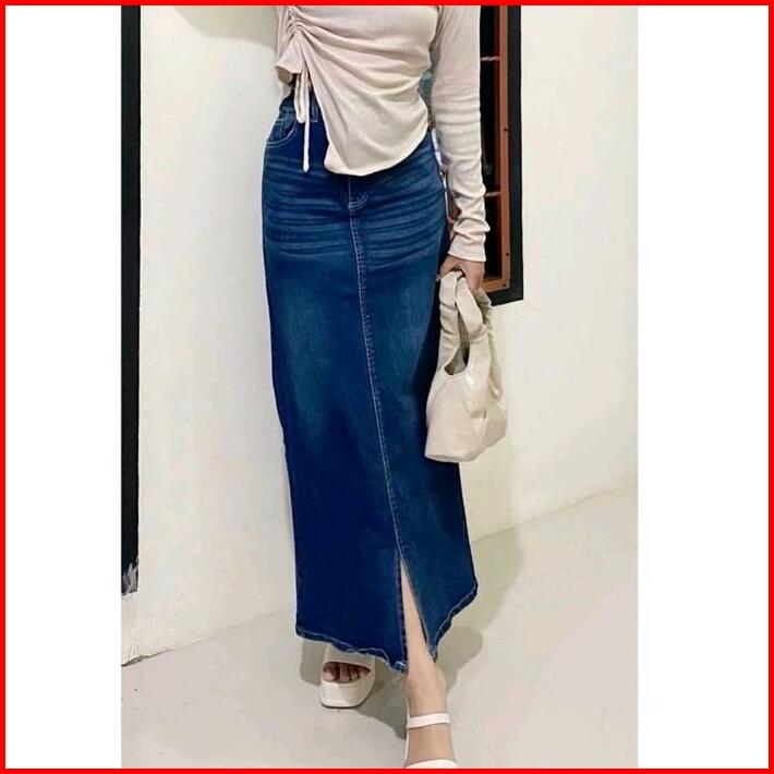 Cessa Rok Jeans Span Jeans Skirt Korean Style Slim Fitting Panjang Highwaist Denim Melar Wanita