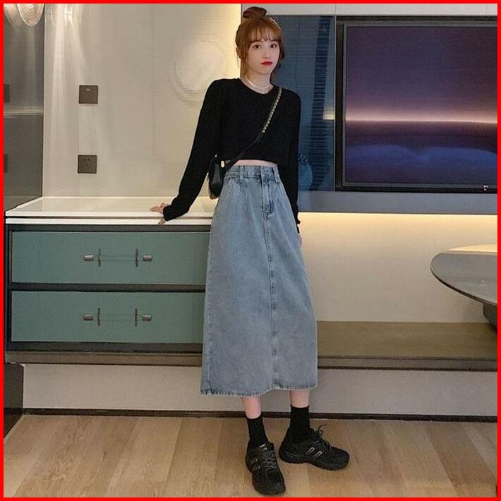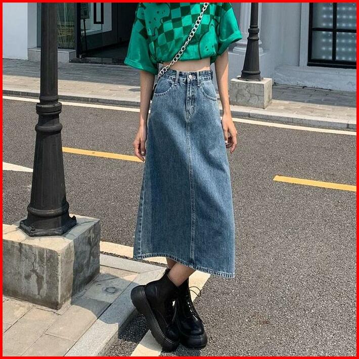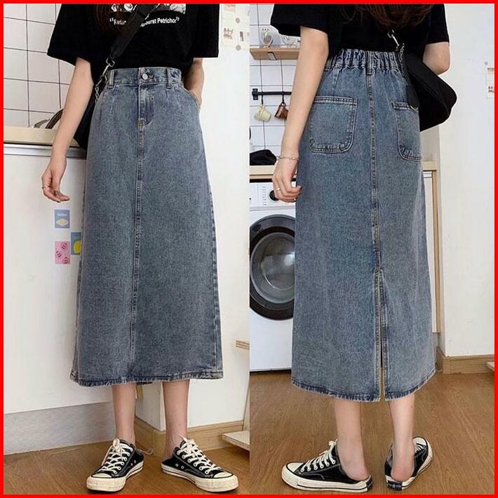 Yoohui Qz036 Rok Jeans Rok Span Panjang Jeans Pinggang Karet Jumbo