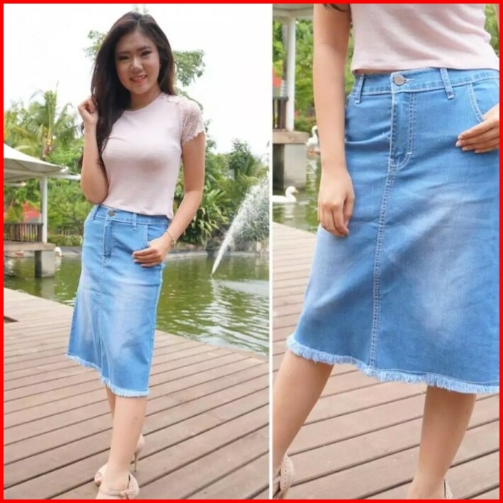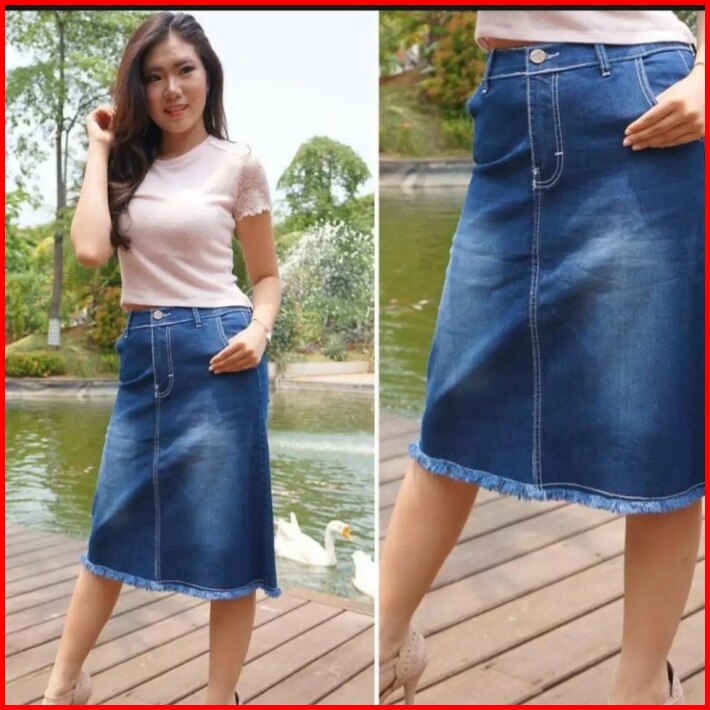 Rok Span Bahan Jeans Stretch Rok Span Wanita Selutut Rok Selutut