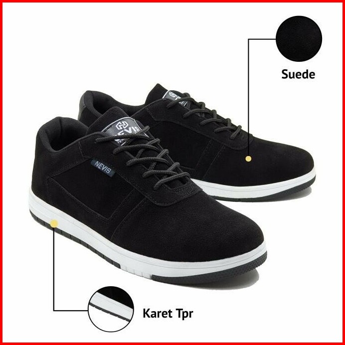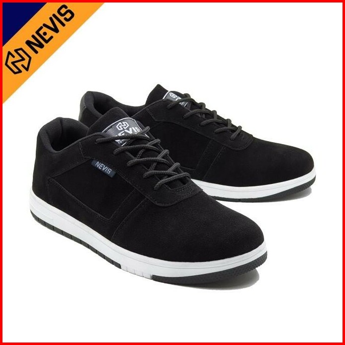 Sepatu Sneakers Pria Casual Nevis Nvs 06 Sekolah Kuliah Original Hitam Gratisongkir
