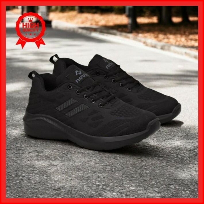 Nevis Sepatu Pria Jumbo Big Size 39-49 Hugo Sport Sneakers Casual Full Black Hitam Polos Best Produk